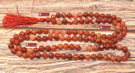 ShriRudram Carnelian Mala for Resilience, Carnelian Necklace, 108 Beads, Prayer Beads, Crystal Necklace, Spiritual Gifts, Yoga Gifts 8 MM