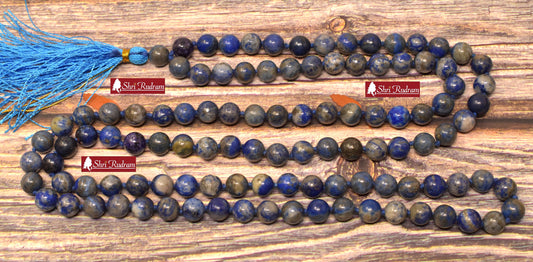 ShriRudram Lapis Lazuli 8mm Mala , 108 Lapis Lazuli Stone Hand Knotted Mala Beads Necklace, Lapis Mala Gemstone Long Necklace 8MM