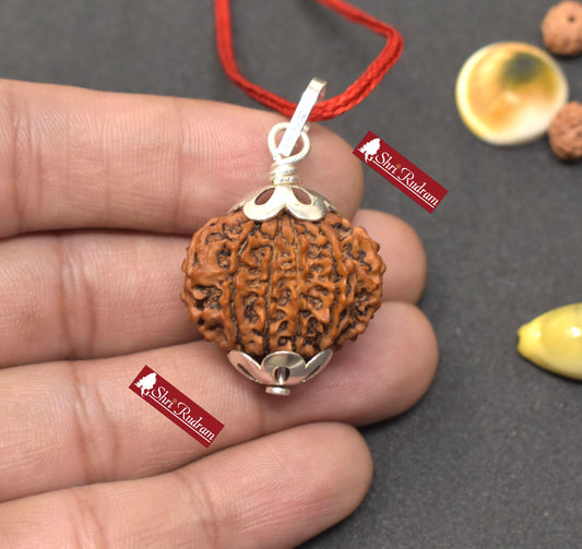 ShriRudram 11 Mukhi Rudraksha / Eleven Face Rudraksh Java Bead in Pure Silver Chain Lab Certified