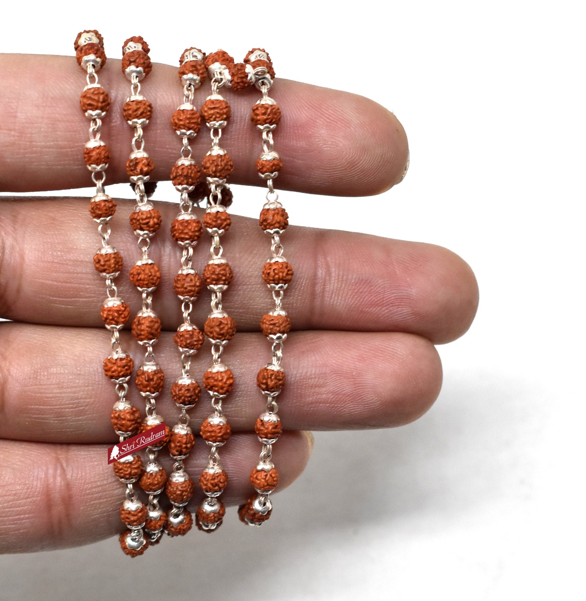 Shri Rudram 5 Mukhi Rudraksha Mala / Five Face Rudraksh Rosary in Silver Lab Certified 108+1 Beads