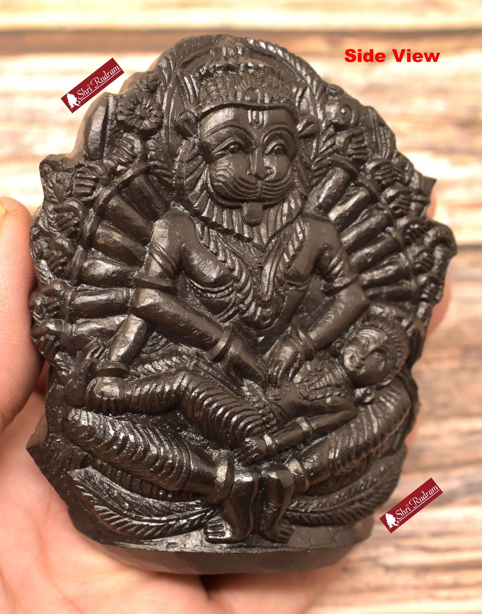 Shri Rudram Jwala Narsimha Murti / Jwaala Narasimha Idol Carved on Sudarshan Shaligram JL315
