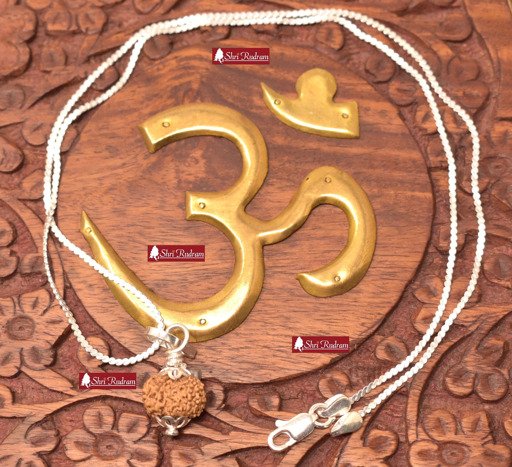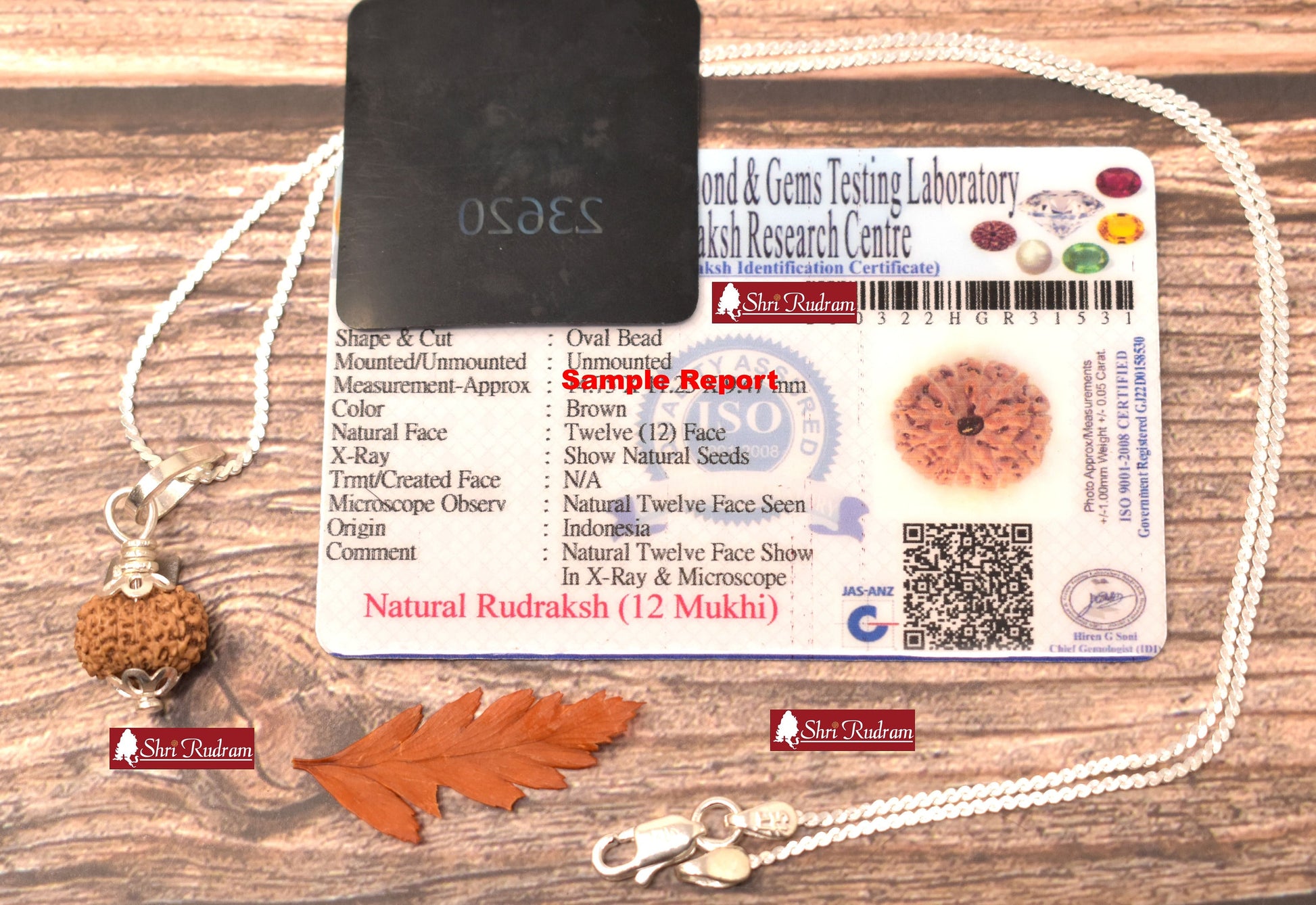 ShriRudram 12 Mukhi Rudraksha / Twelve Face Rudraksh Java Bead in Pure Silver Chain Lab Certified