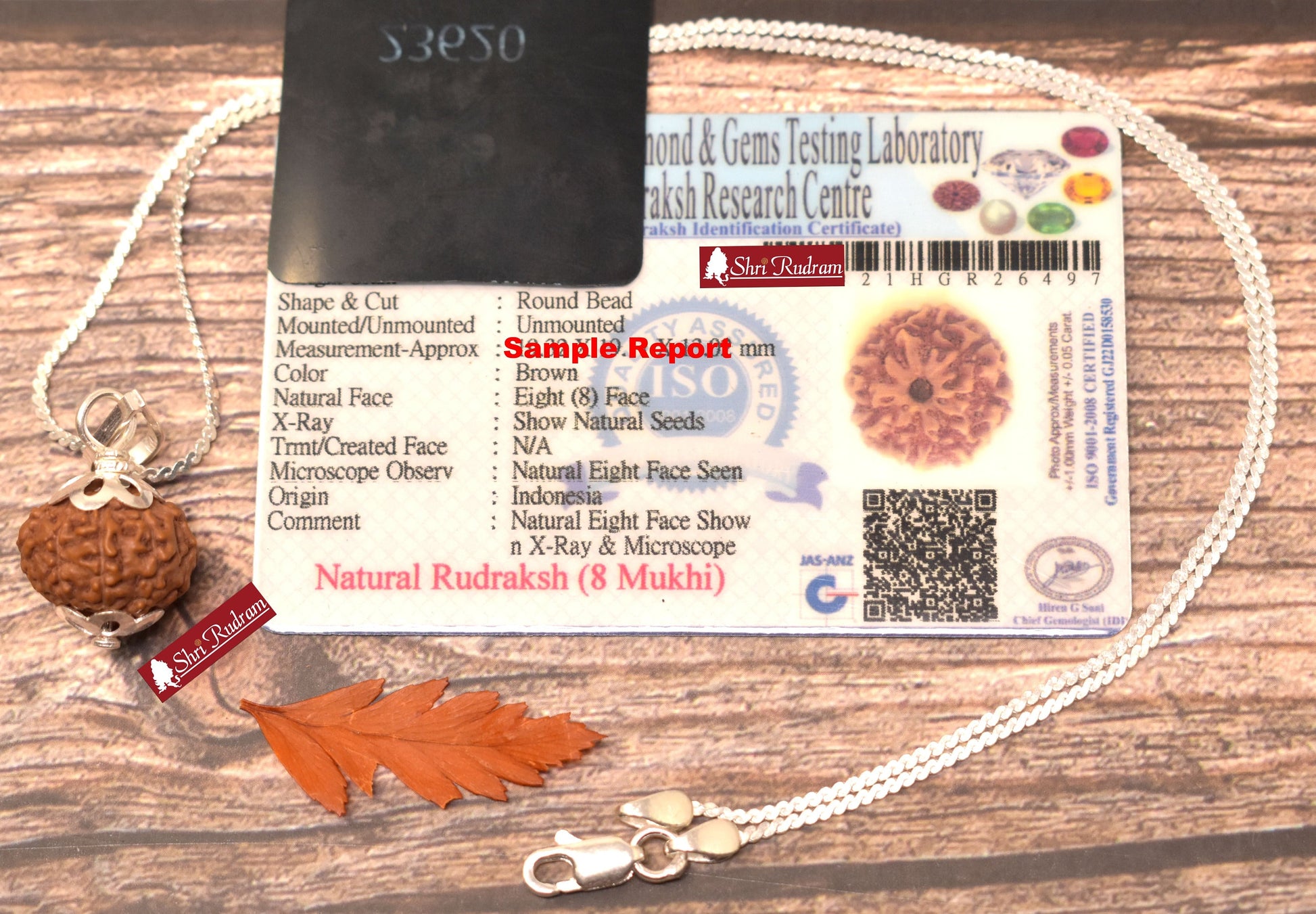 ShriRudram 8 Mukhi Rudraksha Eight Face Rudraksh Java Bead Lab Certified in Silver Chain