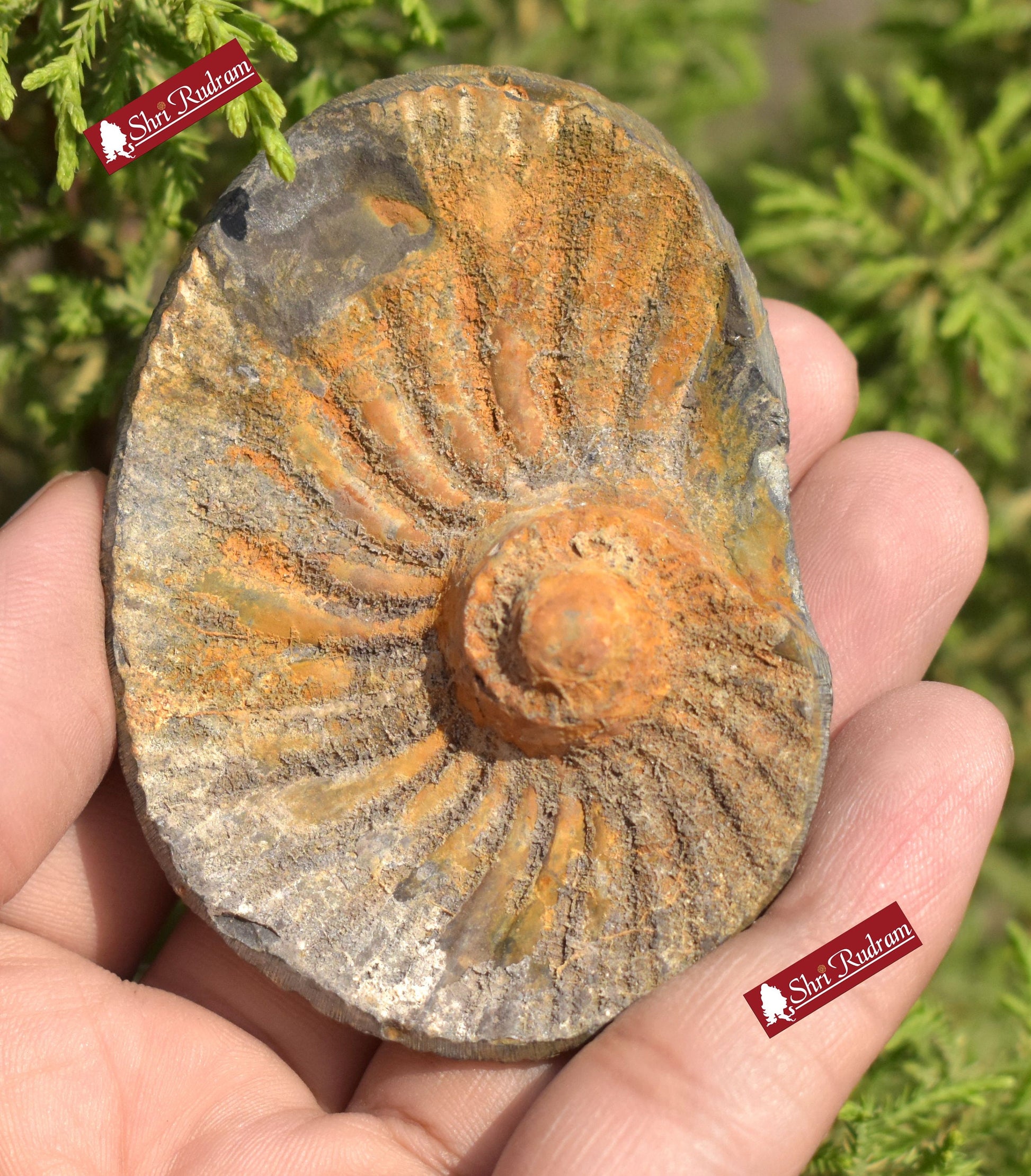 Product Name : ShriRudram Extremely Rare Sudarshan Shaligram, Yellow Brown Sudarshan Shaligram Shila, Sudershan Shaligram Gandaki River Nepal