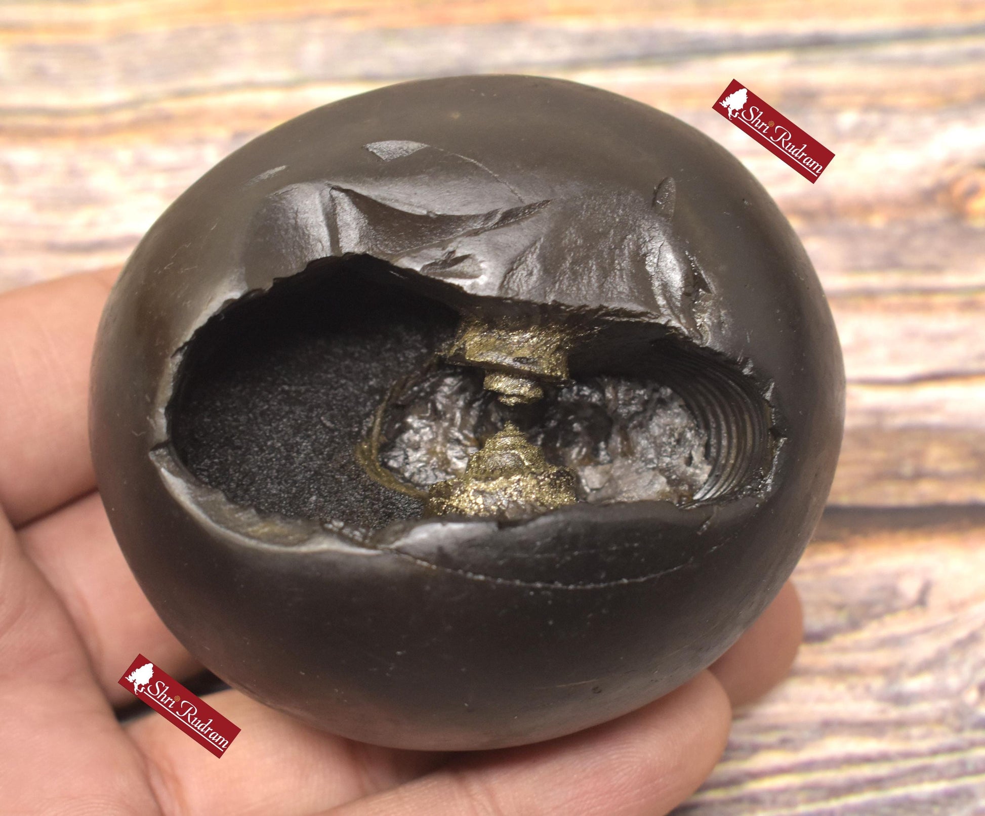 ShriRudram Rare Golden Narsimha Shaligram, Saligram Stone - Gandaki Nepal, Ritual Object, Pooja Item, Vishnu Puja, Religious Gifts