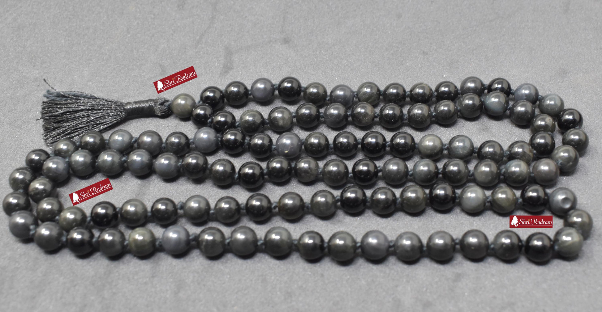 Product Name : ShriRudram Silver Obsidian Mala For Protection, Spiritual Jewelry, Obsidian Necklace, Japa Mala, Yoga Gifts 8MM